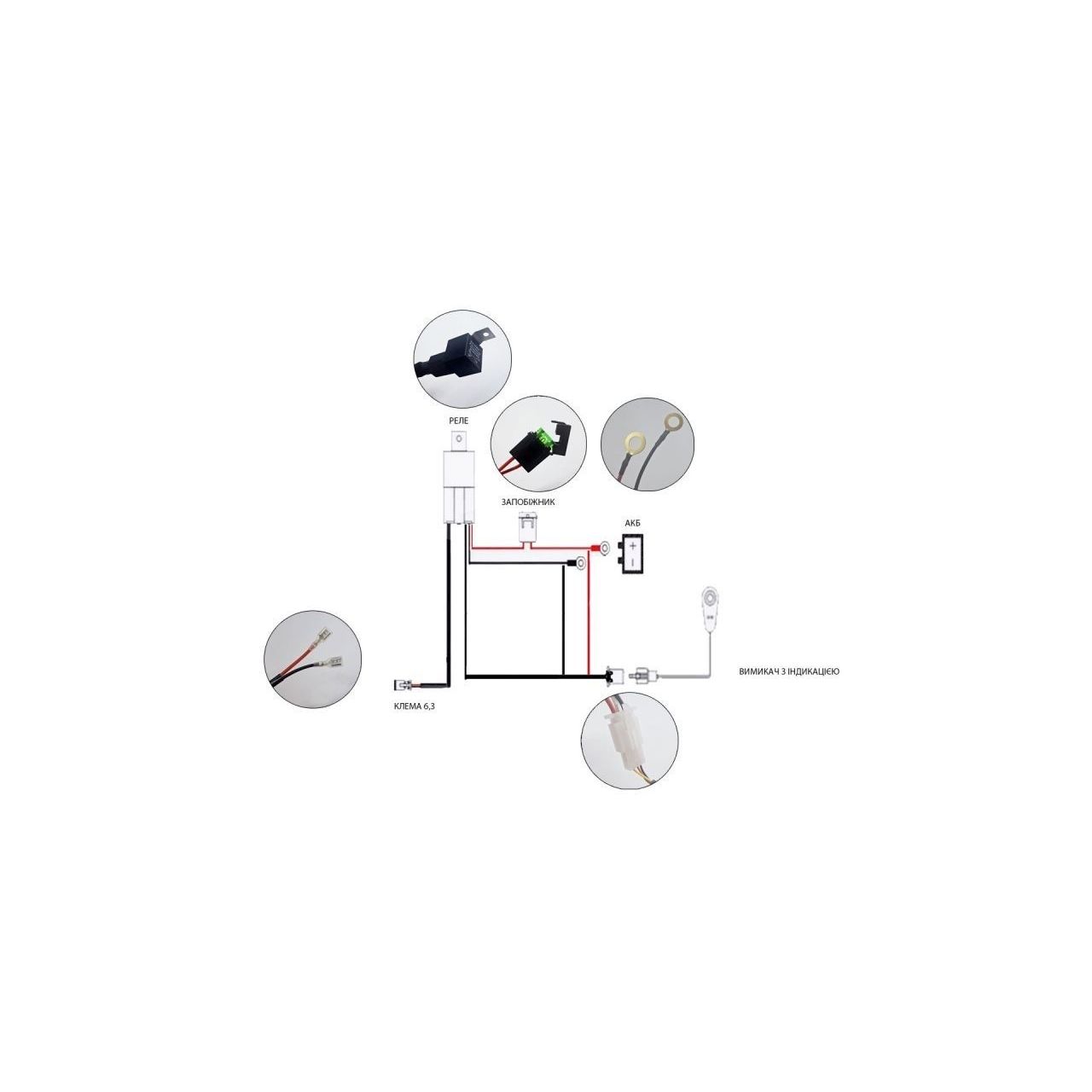 - Универсальная проводка для фар рабочего света, кнопка ON-OFF с LED подсветкой, реле на 12V 40A, мощность 120W, общая длина 5,6 метров, простота подключения.