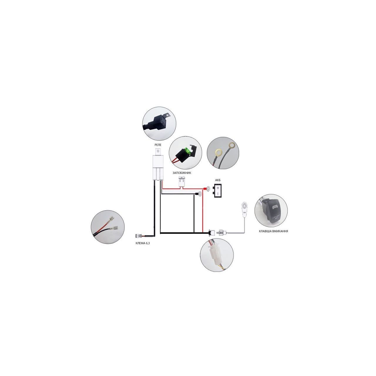 - Универсальная проводка, кнопка ON-OFF с LED подсветкой, реле на 12V 40A, мощность 120W, общая длина 5,6 метров.