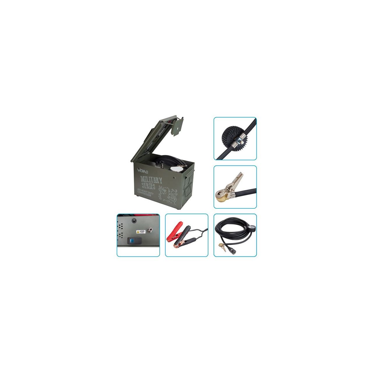 - Идеален для военных водителей внедорожников и пикапов, обеспечивает быструю подкачку и корректировку давления в шинах.