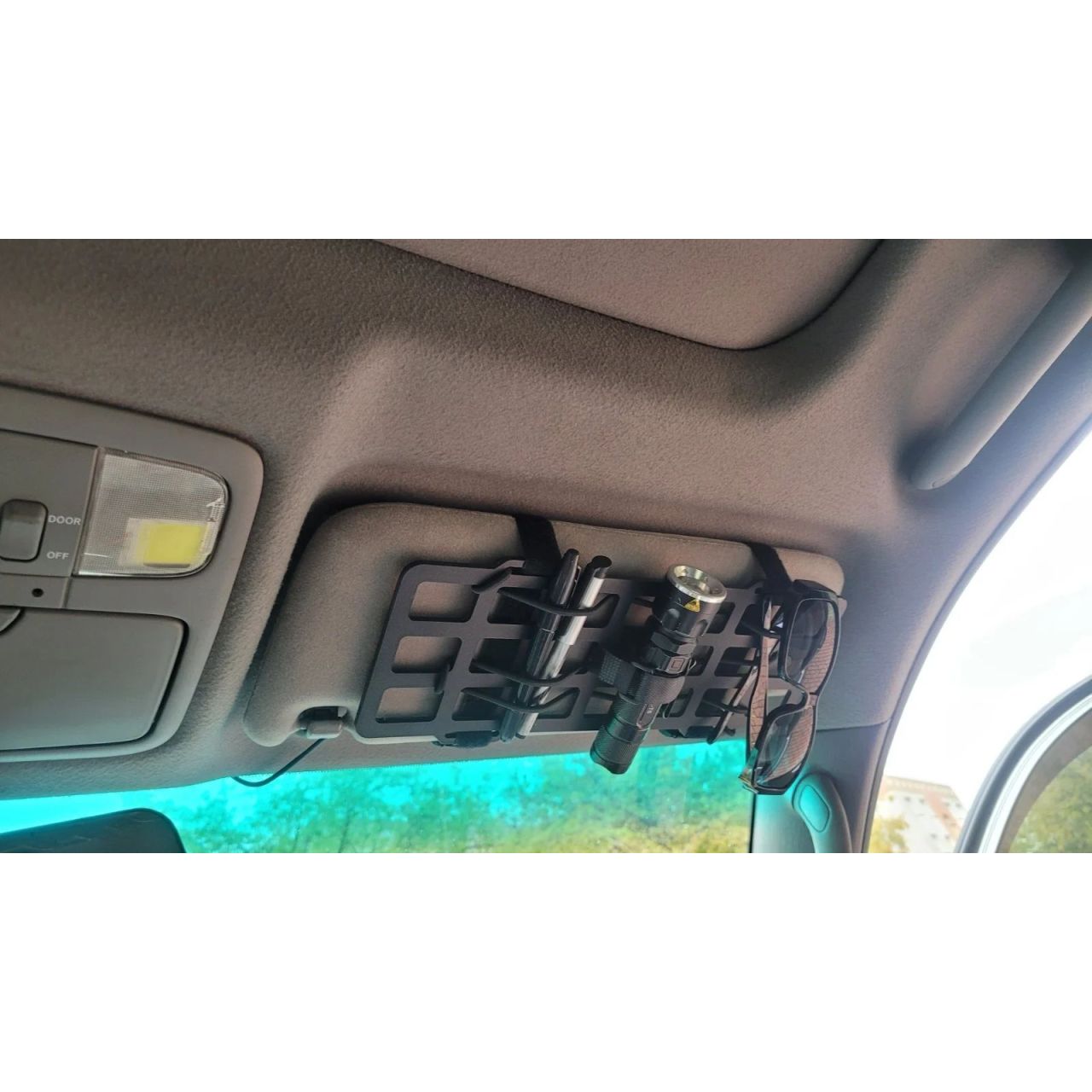 Органайзер Molle для солнцезащитного козырька автомобиля предназначен для удобного размещения EDC. Устанавливается с помощью быстросъемных велкро-ремней, не требует сверления. Панель жесткая и, в отличие от тканевых аналогов, не провисает под весом снаряжения. При необходимости органайзер можно отстегнуть за секунды вместе с снаряжением.