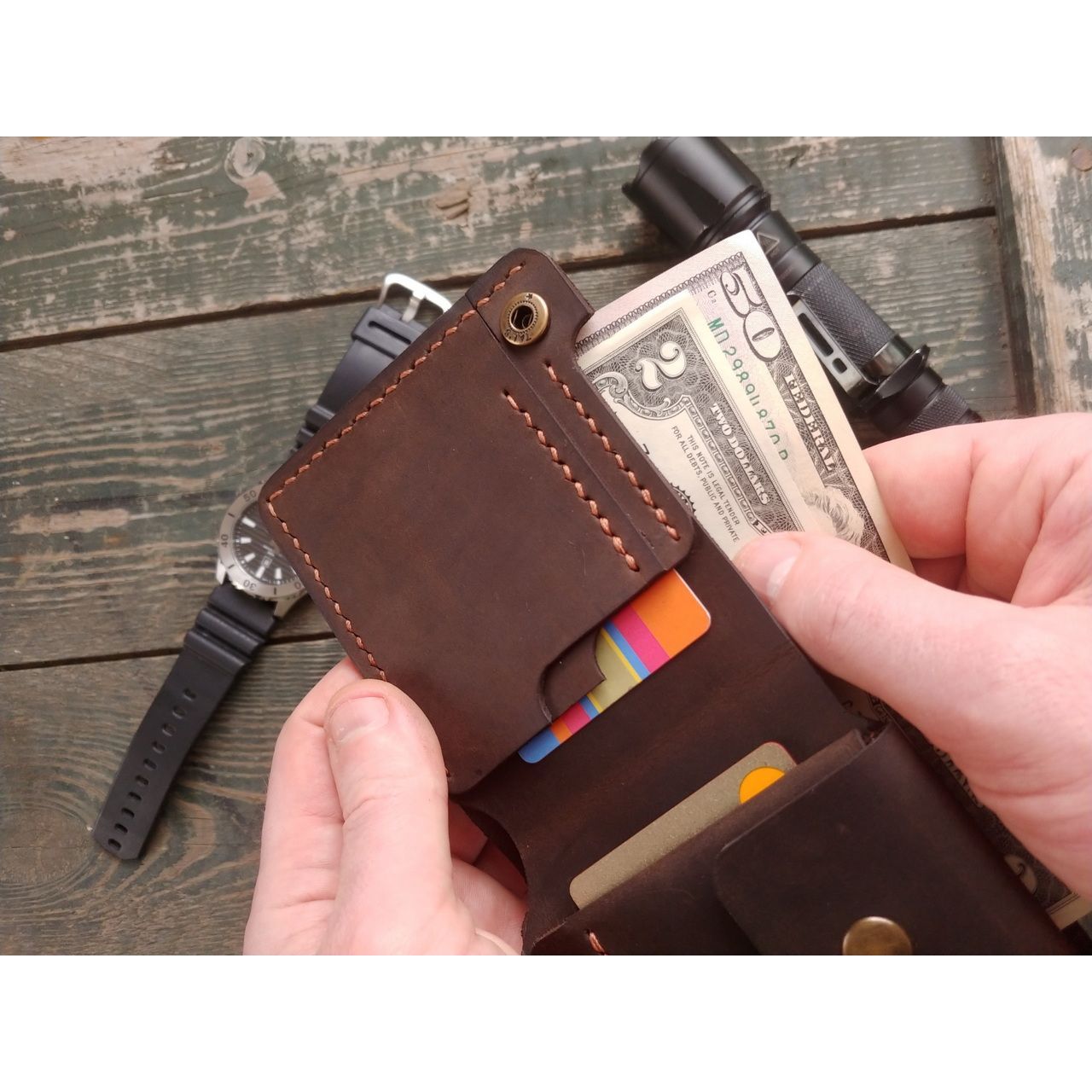 • Практичний шкіряний гаманець ручної роботи розв'язує проблему зручного зберігання готівки та карток, зберігаючи акуратний зовнішній вигляд і додаючи індивідуальності стилю власника.